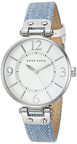 -. Binding : Watch -. Brand : Anne Klein -. Color : Blue/Silver -. Department : womens -. EAN : 0086702582341 -. Feature : Classic silver-tone watch featuring glossy white dial with sword-shape hands and black P.R.Inted inner minute track / 34 mm silver-tone metal case with slightly domed mineral dial window / Japanese quartz movement with analog display / Denim band with contrast stitching and buckle closure / Water resistant to 30m (100ft): In general, withstands splashes or brief Immersion In water, but not suitable for swimming or bathing -. Label : AK Anne Klein -. Manufacturer : AK Anne Klein -. Model : 10/9169WTLD -. MPN : 10/9169WTLD -. PackageQuantity : 1 -. PartNumber : 10/9169WTLD -. ProductGroup : Watch -. ProductTypeName : WATCH -. Publisher : AK Anne Klein -. Studio : AK Anne Klein -. Title : Anne Klein Women's Quartz Blue Casual Watch (Model: 10/9169WTLD) -. UPC : 086702582341