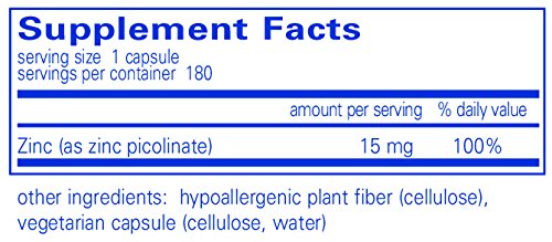 -. Binding : Health and Beauty -. Brand : Pure Encapsulations -. Label : Pure Encapsulations -. Manufacturer : Pure Encapsulations -. ProductGroup : Health and Beauty -. ProductTypeName : HEALTH_PERSONAL_CARE -. Publisher : Pure Encapsulations -. Studio : Pure Encapsulations -. Title : Pure Encapsulations - Zinc 15 180 vcaps