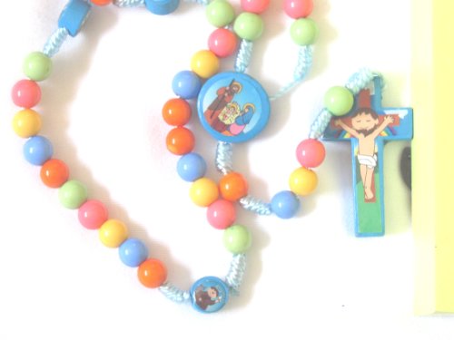 -. Title : Children Franciscan Knotted Multi Color Rosary Includes a Shadow Box Organic Picture Frame