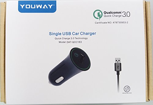 YOUWAY Car Charger for iPhone, Samsung, HTC, Motorola, LG android phone - Black