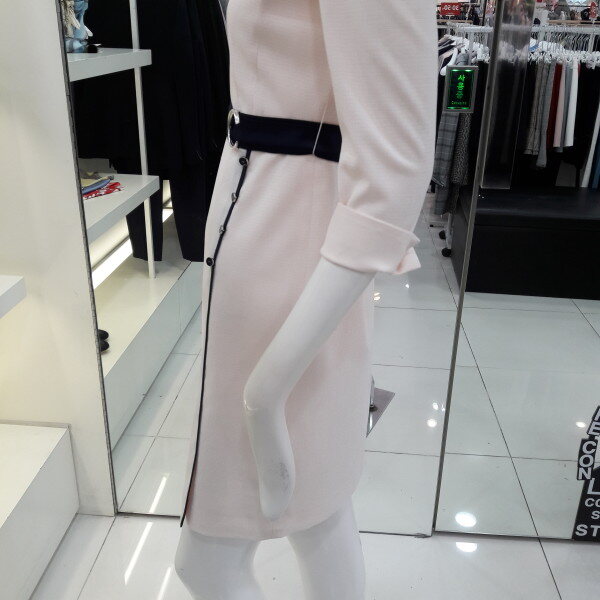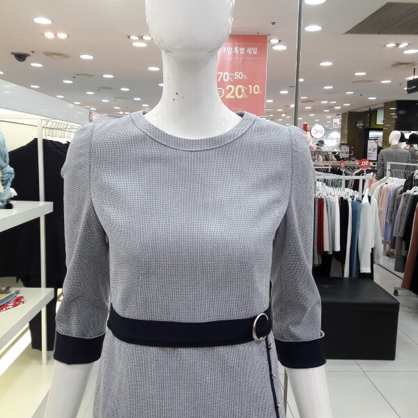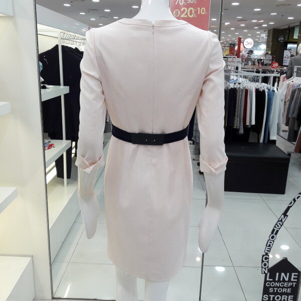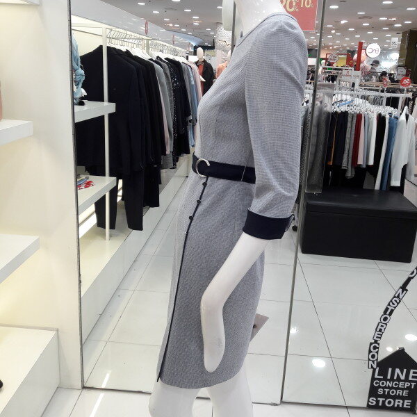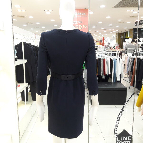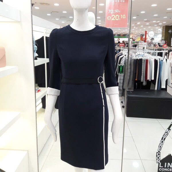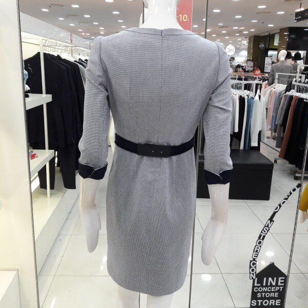 18년 S/S 심플하면서 세련된 H라인원피스입니다 가벼운 소재감으로 여름까지 착용가능하며 벨트와 소매배색으로 포인트를 준 정장 원피스입니다