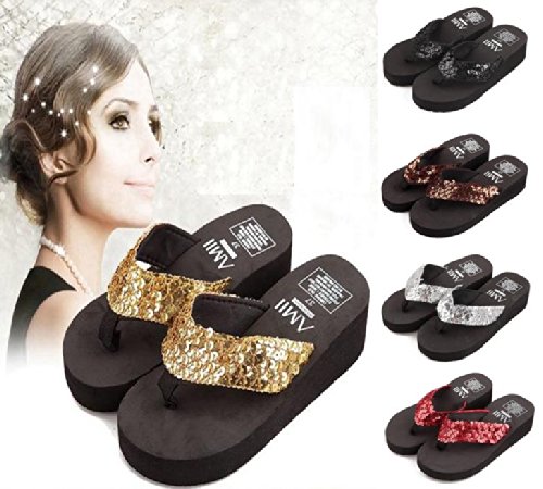-. Title : リーフアンクレット付き♪ カラー5種類!! 【 厚底 スパンコール レディース ビーチ サンダル 】[ELEFANG]