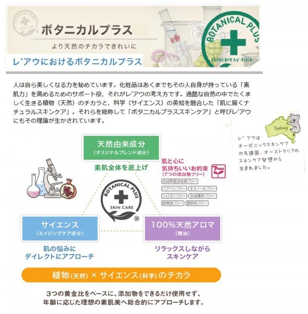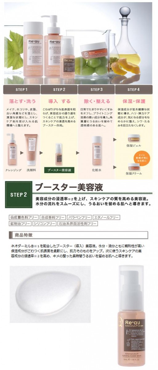 | レ’アウはオーストラリアのスキンケア発想を元に、ネオダーミル(R)とボタニカルのチカラを融合させたファーストエイジングケア化粧品。中でも人気なのがこのブースター美容液。ごわつく肌表面を柔軟にし、肌力そのものをアップ。次に使うスキンケアの美容成分の浸透率を高め、キメの整った長時間うるおいを留める肌へと導いてくれます! |