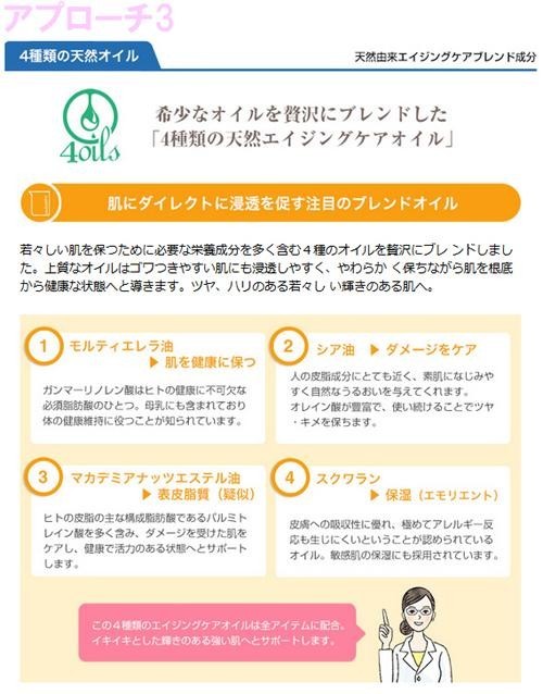 | 成分:水、BG、グリセリン、12-ヘキサンジオール、DPG、グリコシルトレハロース、PEG/PPG/ポリブチレングリコール-8/5/3グリセリン、加水分解水添デンプン、アルギニン、カルボマー、キサンタンガム、ビスPEG-18メチルエーテルジメチルシラン、乳酸桿菌/セイヨウナシ果汁発酵液、乳酸桿菌/ブドウ果汁発酵液、アセチルヒアルロン酸Na、ヒアルロン酸Na、加水分解ヒアルロン酸、メチルグルコシドリン酸、(リシン/プロリン)銅、ザクロ果実エキス、カニナバラ果実エキス、シア脂、スクワラン、マカデミアナッツ脂肪酸フィトステリル、モルティエレラ油、オタネニンジン根エキス、マヨラナ葉エキス、ワイルドタイムエキス、オレンジ果皮油、グレープフルーツ果皮油、ラベンダー油、ローズマリー葉油、ニオイテンジクアオイ油、パルマローザ油、アルテミシアヘルバアルバ油、PEG-60水添ヒマシ油、ペンテト酸5Na、フェノキシエタノール |