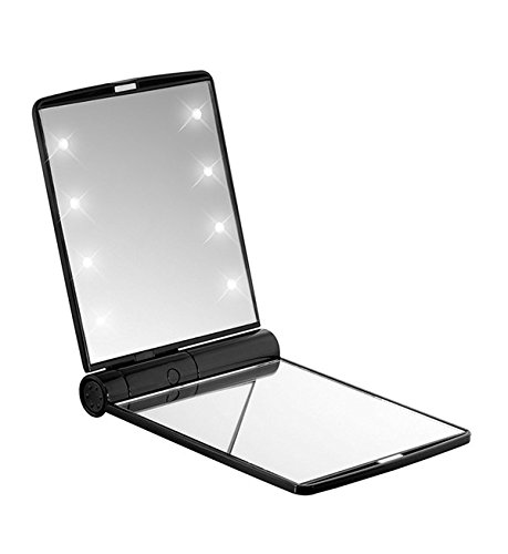 - (Portable LED makeup mirror), soft eye LED lights, brighten up your beauty even under poor light - (Excellent travel mirror), Light small design allows you to take this anywhere, plus it folds to protect mirror surface from scratches - (Long battery life) Long battery life, extra battery included for extra battery life - (Perfect Gift) for mother daughter friend or sister