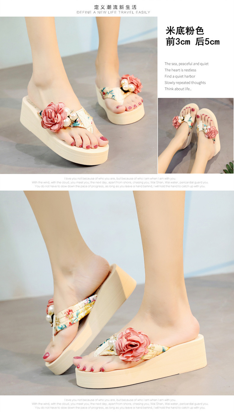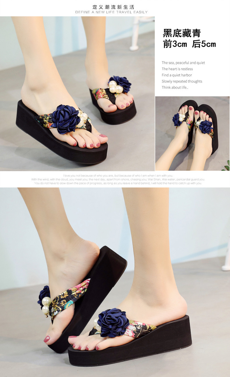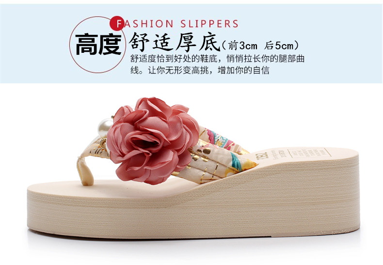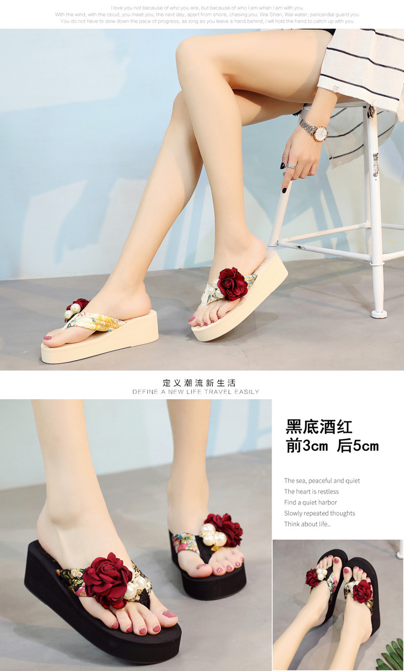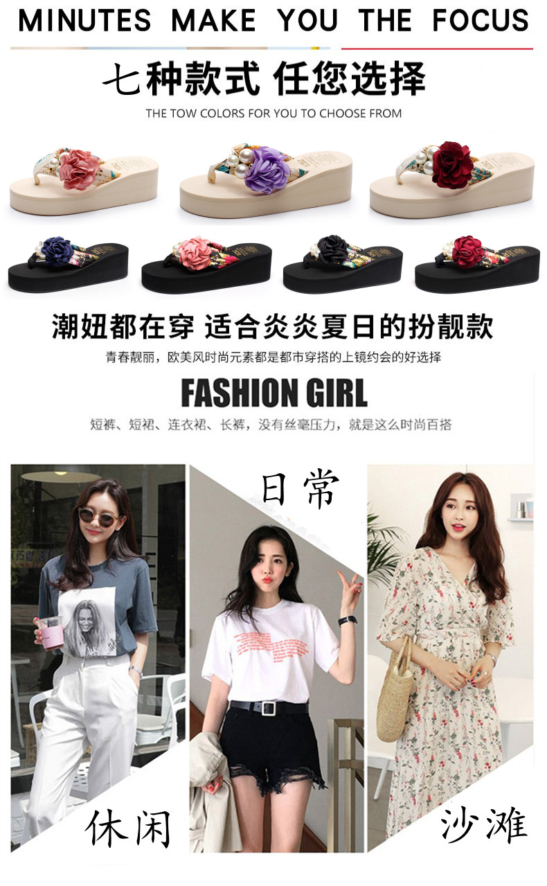 新款高跟拖鞋女夏坡跟凉拖时尚外穿厚底防滑人字拖海边度假沙滩鞋