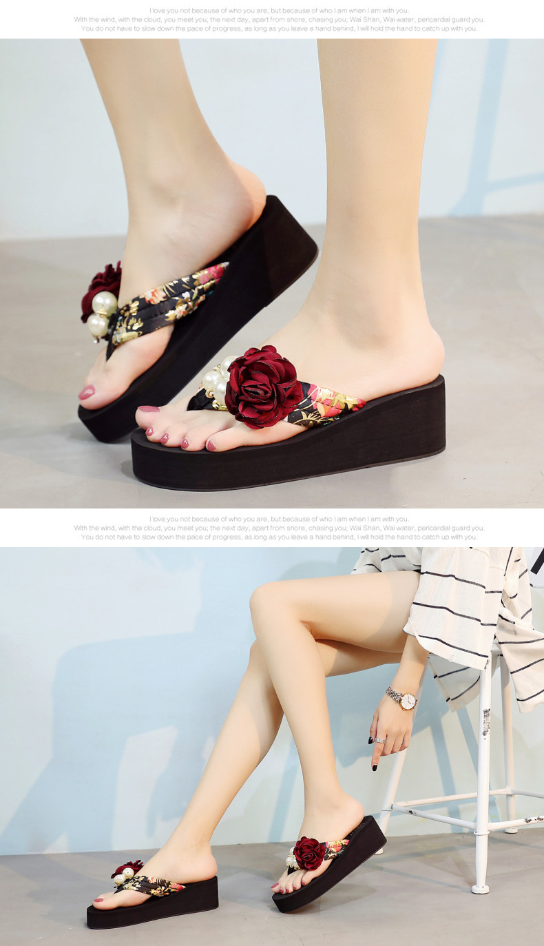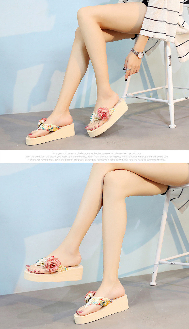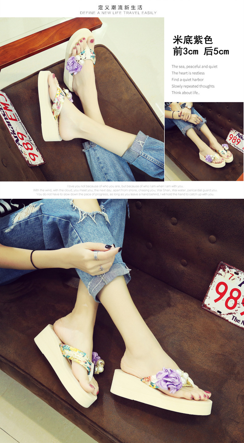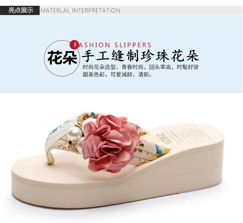 新款高跟拖鞋女夏坡跟凉拖时尚外穿厚底防滑人字拖海边度假沙滩鞋