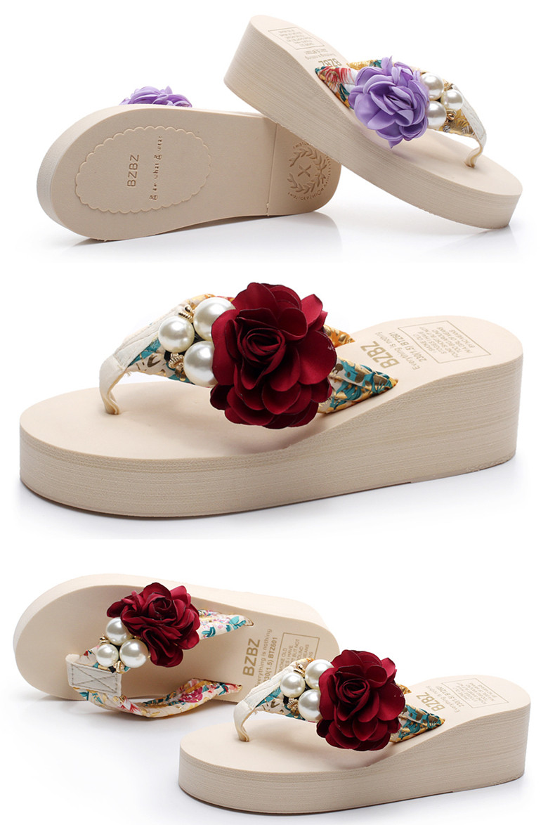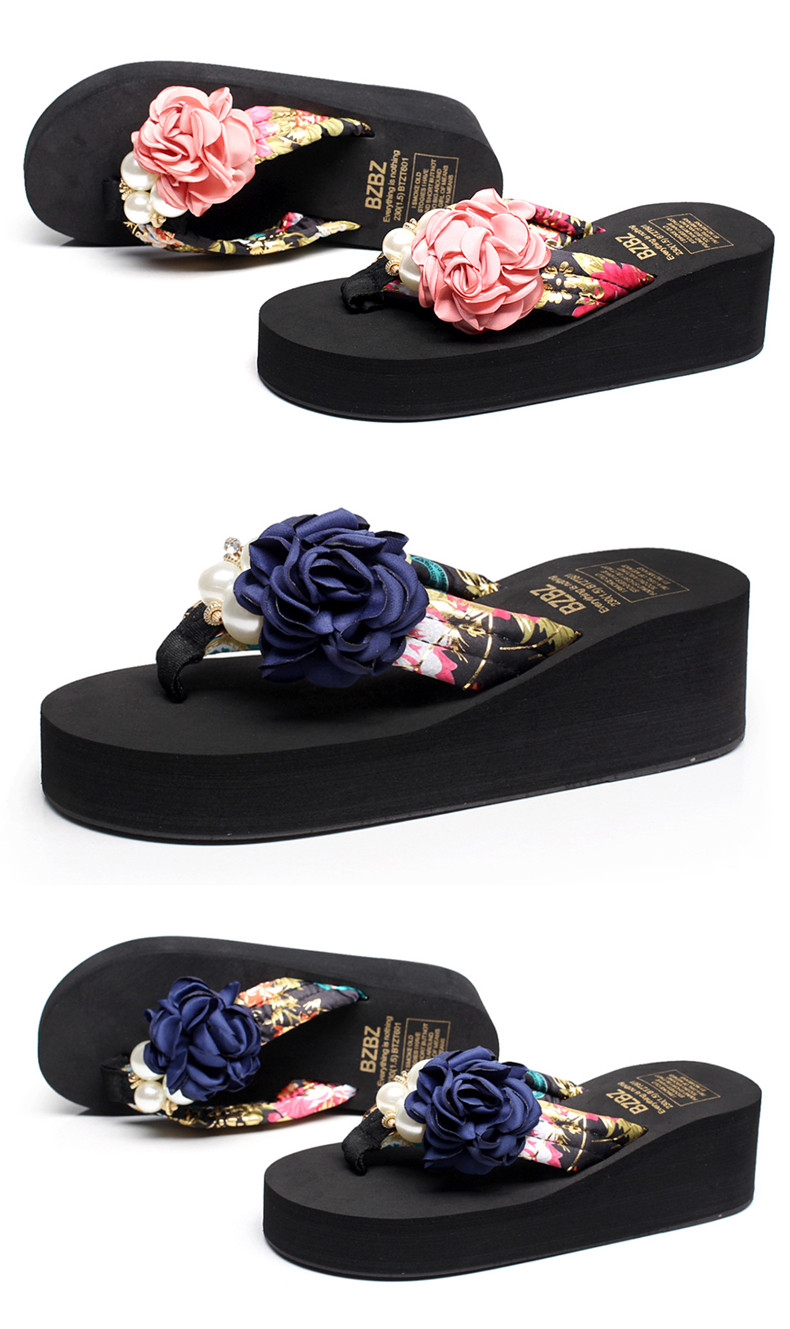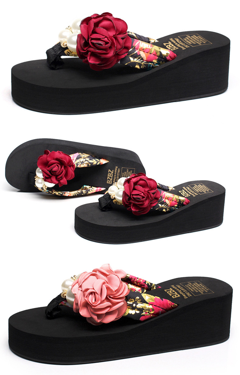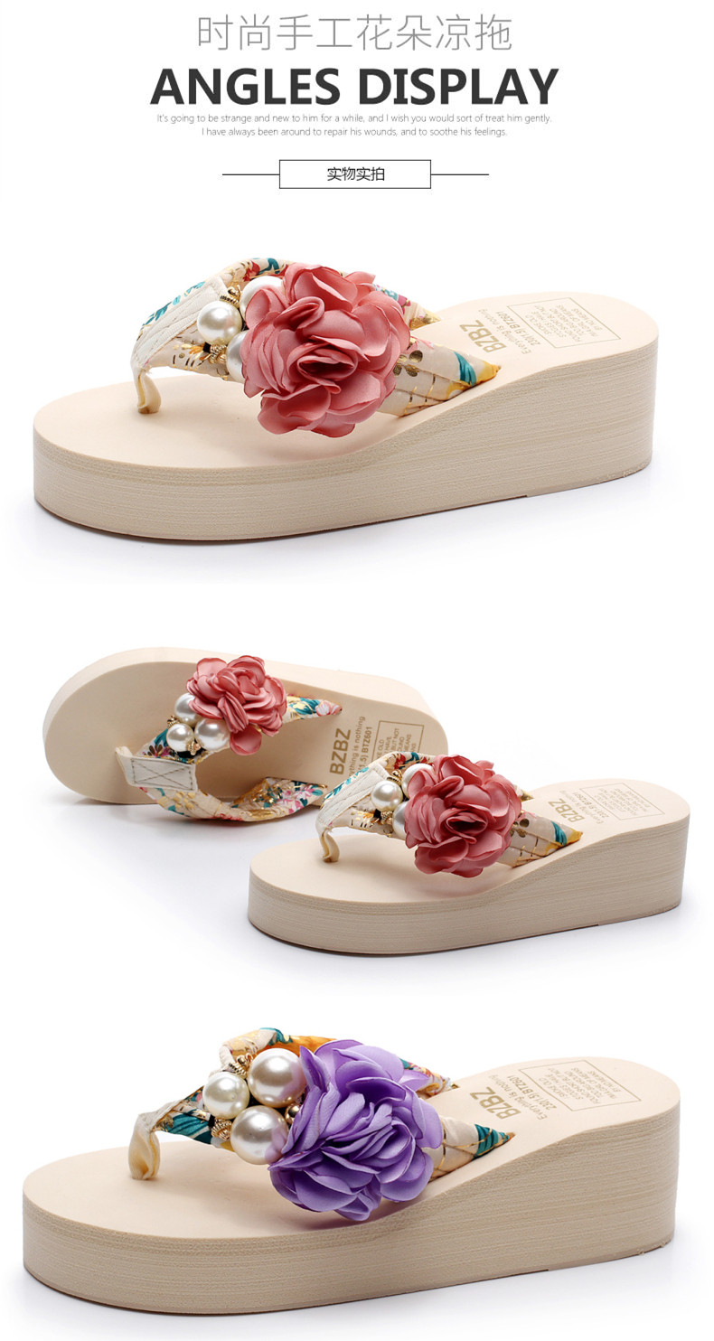 新款高跟拖鞋女夏坡跟凉拖时尚外穿厚底防滑人字拖海边度假沙滩鞋
