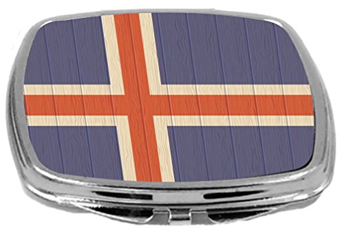 Rikki Knight Compact Mirror on Distressed Wood Design, Iceland Flag, 3 Ounce