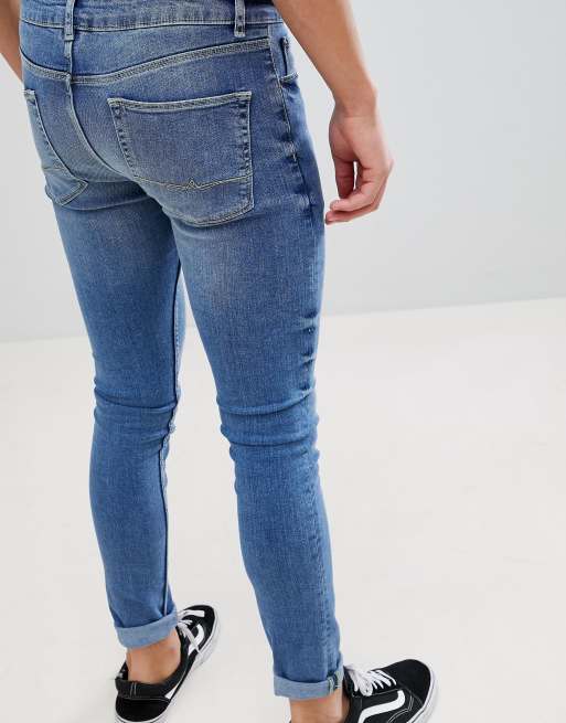 ASOS Super Skinny Jeans In Mid Wash Blue