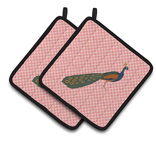 Caroline's Treasures BB7925PTHD Indian Peacock Peafowl Pink Check Decorated Pot Holder, 7.5" x 7.5", Multicolor