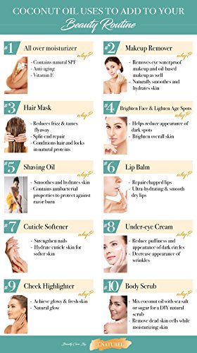 - 100% Pure, Natural, Organic, Raw – Extra Virgin Coconut Oil for womens beauty face, body, nails, skin, hair; Versatile skincare product for daily routine in morning and night; Premium high quality beauty grade oil; Colorless odorless non greasy