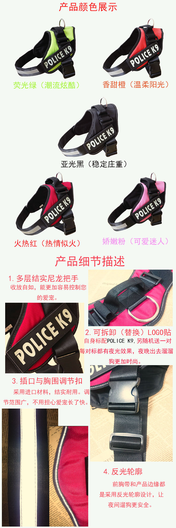 Product Size: XS code: chest 55cm-76cm sleeve adjustment range for a Border fighting, cattle and other medium-sized dogs and large dogs in puppy S code: chest sleeve adjustment range 65cm-85cm edge for animal husbandry, bullfighting and other medium-sized dog, and in large dogs M code: chest sleeve adjustment range 71cm-96cm for female Golden Retriever, German Shepherd female, medium and large dogs horses L code: chest 82cm-115cm sleeve adjustment range for male Golden Retriever, male German Shepherd, Alaska and other large dogs XL code: chest 92cm-130cm sleeve adjustment range for male Golden Retriever, male German Shepherd, Alaska and other large dogs
