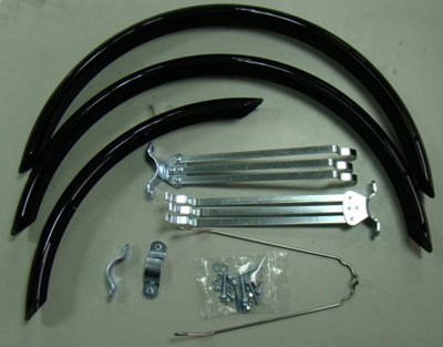 -. Feature : Fender set made of black high impact plastic with a glossy finish / Stainless steel stays / Front & rear set