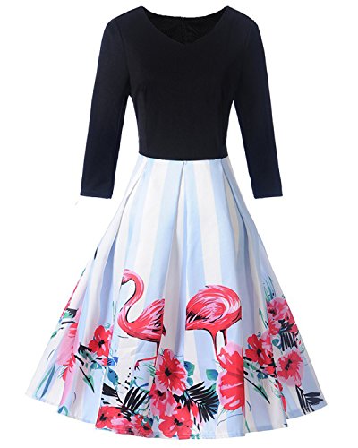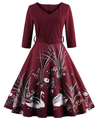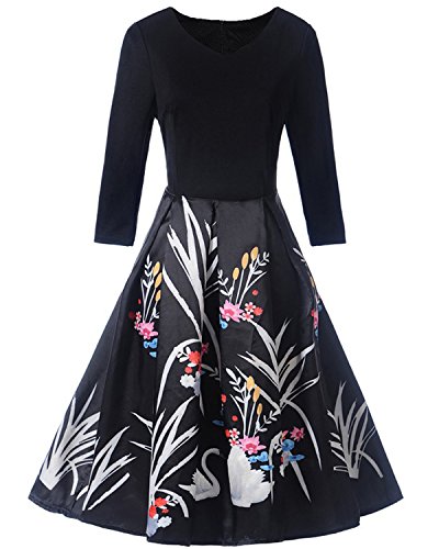 Rock the city with the most artistry dressZaful's vintage floral and swan printing swing dress will immediately put you out there with a strong presence. Whether you are attending an art gallery exhibition in the trendiest neighborhood, or an evening cocktail party, this dress will fit all situations! Pair it with the appropriate shoes and accessories and be ready to have all eyes on you. The printing design is carefully done, take a closer look to see all details! Moreover, the ¾ French sleeves along with the V-neck and the defined waistline of this dress create a look super elegant and chic and will enhance your silhouette!