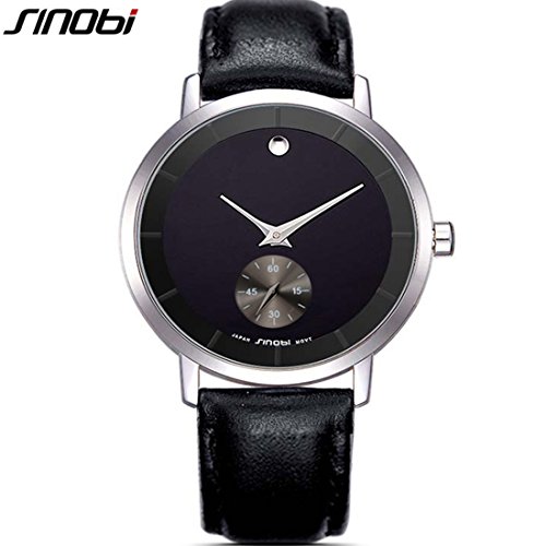 -. Feature : A. Classical Wristwatch Design: Fashion parent? dials design and classical business genuine leather watchband, small seconds dial and big consice black and white dial, perfect blend of timeless theme style, elegant appearance produces your charm and style. / B. Extraordinary Watch Technology: Wrist watches from professional technicians and serious focus, Japanese quartz movement, stainless steel water resistant, provides precise and accurate time keeping. Precision is our inspiration. Time will tell. / C. Waterproof for Daily Use: 50M waterproof, perfect for all kind of business, casual, indoor activities or daily use. Note: Please DO NOT press any buttons in water or no longtime underwater activities - such as diving. / D. The Mastery of Time: Thoughtful watch, only for wise man, time walker. Be the king of the spiritual kingdom that is your heart. Take in the journey, business, party, banquet, sport or as a gift for friends. Delicate taste, enjoy life! / E. About SINOBI: Established in 1996, with 20 years history, SINOBI has been crating wrist watches a fashions & styles code. The mission is to convey a philosophy, Seize time, Never late to discover, Beyond your imagine. The goal of SINOBI is to make every watch a work of art, as global fashion model.