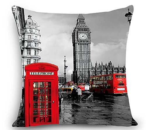 Retro United Kingdom London Red Phone Booth Knight Taxi Cotton Linen Square Throw Waist Pillow Case Decorative Cushion Cover Pillowcase Sofa 18"x 18" (1)