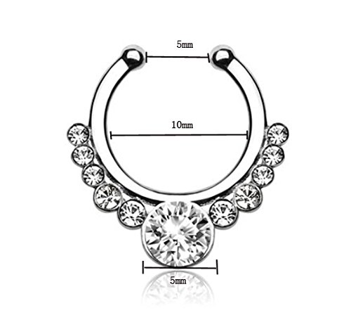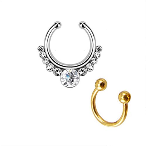 Honbay Fake Septum Clicker with Gems Non Piercing Hanger Clip Nose Ring