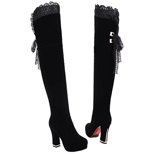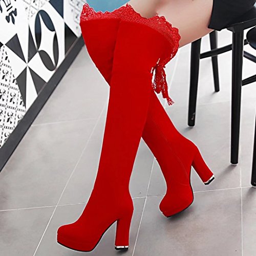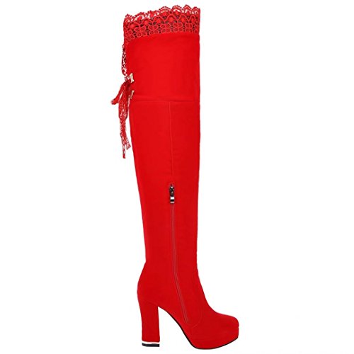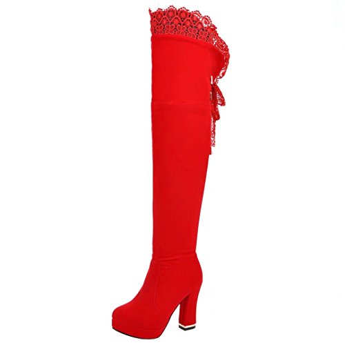 * Heel Height:10.5cm * Shaft: 54cm * Boots opening: 40cm * Platform Height: 2.5cm * Material: Suede Lace * Inner Material: Short Plush * Sole Material:Rubber * Color: Black, Red * Toe Type: Round Toe * Closure Type: Zipper * Heel Type: Block Heel * The package will be delivered to you about 7-12 business days. * Please measure the sizes of your feet before you buy this item. If your foot is slightly wider or one of your toes is longer than usual, please choose the larger size. * Q1: What can I do if I have any problems? * A1: Please send email to tell us your problems first,we will reply you in 12 hours(except holiday) and try to find the best solutions,thanks for your trust! * Q2: What can I do if the products have problems? * A2: Please send us email with the problem products picture,which can help us to solve the problem in time! * AIYOUMEI commits to the shoes' design, craftsmanship have a unique study to the Excellent quality of products and timely courtesy of customer service experience, adhering to the customer is God's philosophy.Our product main conclud boots, military style, espadrilles, flat, lace-ups, loafers panties, High heels, plateau, casuals, dress shoes, oxfords and so on.If there are any problems, please feel free to contact us at any time, we are always here to help you. 0 |