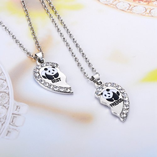 HooAMI White Rhinestone Best Friends Panda Animal Split Heart Pendant Necklace 2pcs