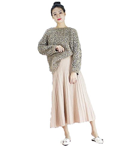 -. Title : アイビエツ(AIBIETU)レディース ハイウエスト ロングスカート マキシ丈 プリーツ スカート ウエストゴム ニットスカート 秋冬