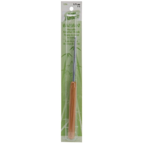 Susan Bates 5-1/2-Inch Bamboo Handle Silvalume Head Crochet Hook, 3.75mm, Steel Grey