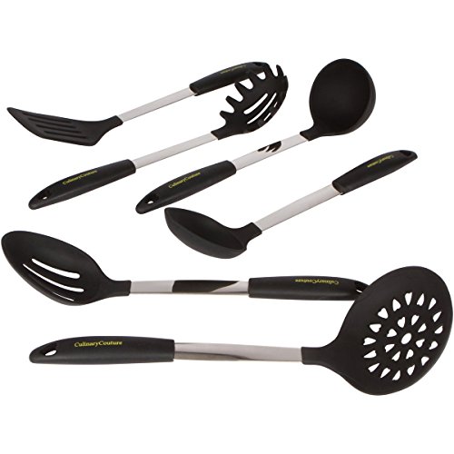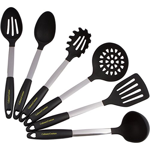 -. Title : Culinary Couture Stainless Steel & Silicone Kitchen Utensils Set, Professional Grade Cooking Tools, Black, Bonus Ebook!