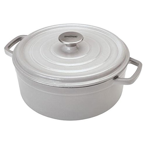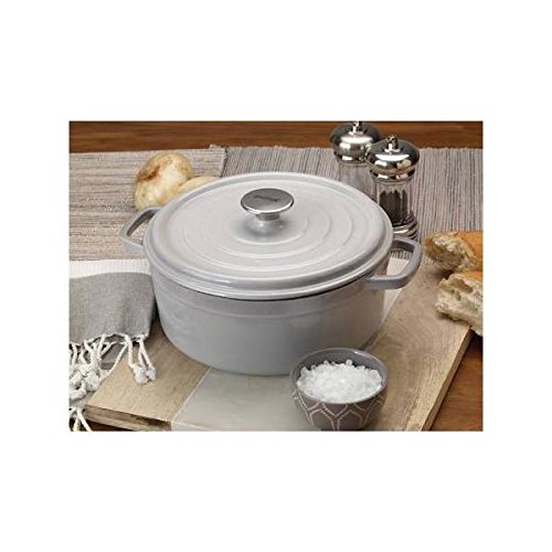 -. Feature : 5-quart size is ideal for making soups, stews and more / Stylish grey enamel finish inside and outside / Double handles ensure easy carrying / Lid keeps heat trapped inside / Cast iron heats evenly for thorough cooking