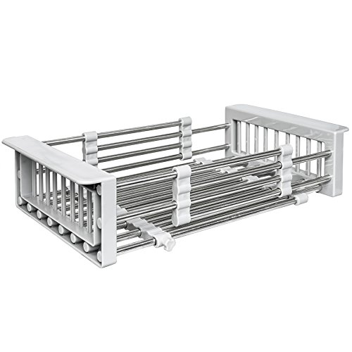 Golden Vantage Chrome Finish Adjustable Length Arms Holder Kitchen Strainer Dish Drainer Drying Organizer Dish Rack For Vegetable Fruit Kitchen Sink