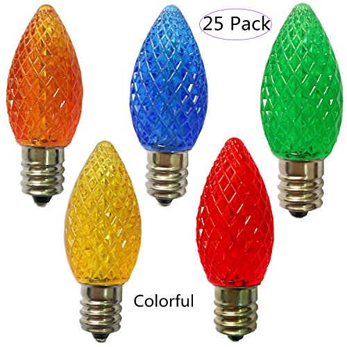 - Novelty Lights 25 pack C7 colorful replacement bulbs,Not Fragile,lights soft,safe,strong,energy savings and eco friendly - Reduce power consumption by more than 90% compared to incandescent bulbs