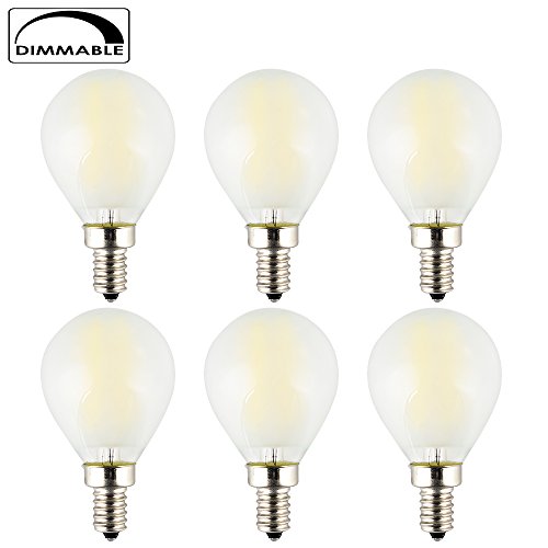 OPALRAY G14(G45) Mini Globe LED Filament Tungsten Bulb, 4W Dimmable, 400Lumens Daylight (4000K), 40W Incandescent Bulb Replacement, E12 Small Candelabra Base Lamp (Natural White-Frosted Glass-6 Pack)