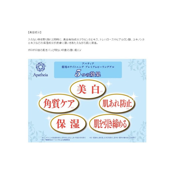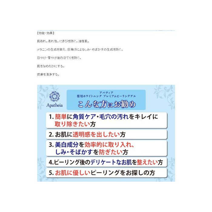 원본상품명: アパティア 用ホワイトニングプレミアムピリングゲル 部外品