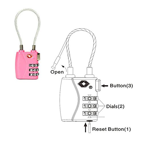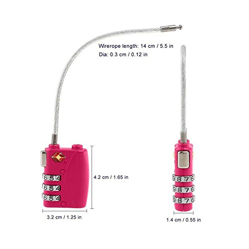 -. Feature : TSA approved lock can be locked and unlocked by tsa agents without damaged lock. / Flexible cable allows for easier threading through lage zippers. / Sested uses: lage, backpacks, bags, small cabinets, briefcases, computer bags, and more / Set your own combination, 1000 possible combinations!!! / 100% zinc alloy with exquisite appearance