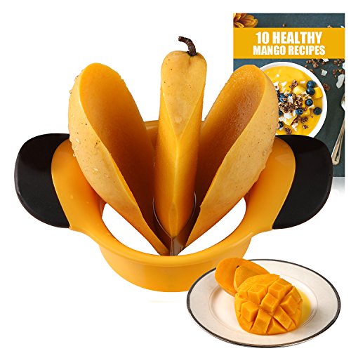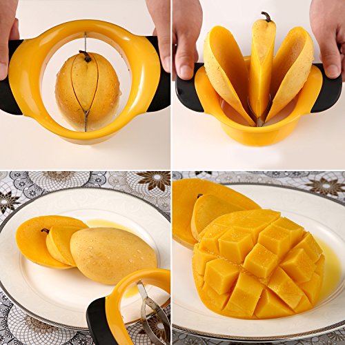 Easy to Use: Place your mango on the table or counter and press down. With the comfortable non slip handles, you can easily remove the mango pit and cut it in half in one smooth motion.