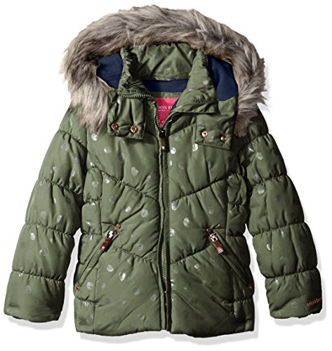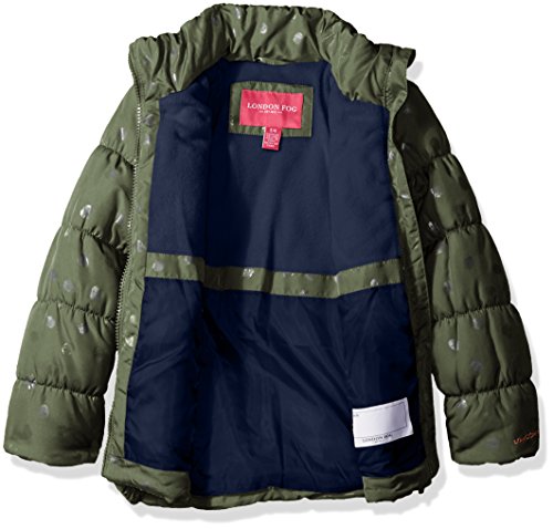 London Fog Little Girls' Heavyweight Clear Foil Dot Puffer, Green, 5/6