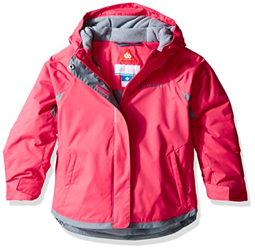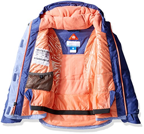 Outfitted with girlish details like a pleating on the shoulder seams and a cute tuilip hem, the Columbia Sportswear Girls Alpine Action Omni-Heat Insulated Jacket features progressive technology and all the bells and whistles to keep them warm and protected on the mountain. Insulation and body-heat-trapping thermal reflective technology provides warmth, waterproof breathability seals out the wet, and special Outgrown™ cuffs that can extend to accommodate for growth over multiple seasons. Omni-Heat Thermal Reflective - Make Your Own Heat Thermal Comfort. This thermal reflective dot lining regulates your temperature, using space blanket technology to reflect, trap and retain your body heat, while maintaining a high level of breathability and interior airflow, to disperse moisture and excess heat, keeping you comfortable. Boosts heat retention by 20% on average, and the metallic nature neutralizes static buildup.Microfleece-lined hood and spinal column..Attached, adjustable hood..OUTGROWN grow system..Adjustable, snap-back powder skirt..Zippered ski pass pockets..Zippered, fleece lined hand pockets..Goggle pocket..Reflective detail..Adjustable cuff tabs..Avg. length: 23in..Import..Feature