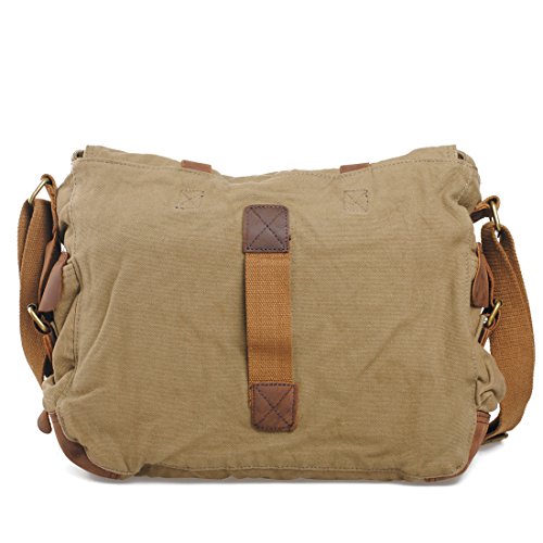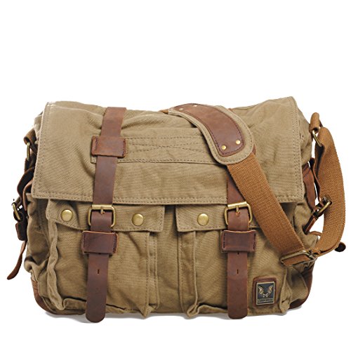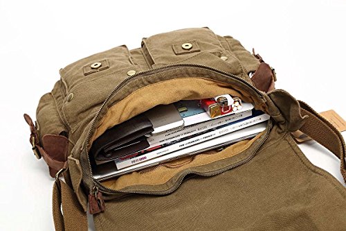 -. Title : Vintage Military Leather Canvas Messenger Bags Laptop Bag ,Men's Shoulder Bag,14-17" Inch-Back Bag for School-L-Army Green
