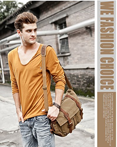 -. Feature : Main material: use of high-quality cotton canvas, high-quality imported first layer of leather and bronze metal / Structure: A total of six pockets, one main pocket, outside there are: two front pockets, a zippered back pocket; inside: a zipper pocket, a computer compartment. / Dimensions:L suit 14.7 inch MacBook Pro well but it is a little small for a 15 inch laptop ,XL suit 15 inch laptop well and it's available for 17.3 inch laptop. / Features: Design retro minimalist design, with thick shoulder strap handle, more comfortable,it is popular among adults,teens,men,women,boys and girls whether you walk, bike, drive, bus or train. Related topics: Haversack, courier, messengers, men's, women's, travel, bookbag, cloth, duffle, office, teens, case, business, sachel, mailbag, student, utility. / Internal and external organizer pockets make this bag ideal for work, commuting or college.Can be worn on your front or back or as a crossbody bag. Quality:if you have ANY problems with this messenger bags simply let us know(open your order id and contact us) and we will refund every penny of your purchase or ship you another brand new messenger bag.