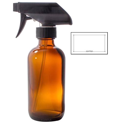 8 oz Amber Boston Round Thick Glass Trigger Spray Bottle + Label - Perfect for Home, Cleaning, Cooking, Essential Oils, DIY, Gifts