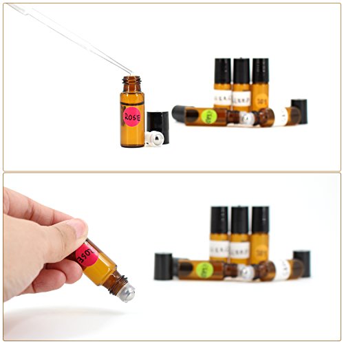 - CONVENIENCE--Included 36 Peices Bottle Labels for marking the type of oils you filled with the roller bottles, 1ml Dropper Pipettes & Plastic Mini Funnel are an ideal equipent to transfer and dispense liquids