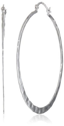 A highly reflective hammered finish adds extra shine to these large flat oval hoop earrings. Crafted in 925 sterling silver with a rhodium overlay for tarnish resistance, they are a chic accessory that will take any outfit to the next fashion level.Feature