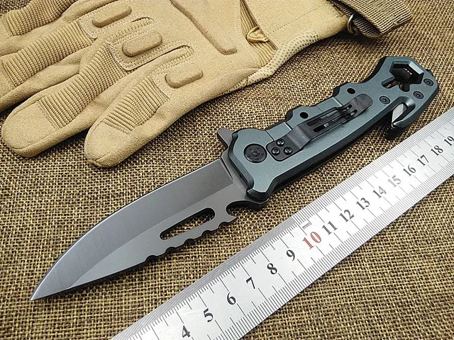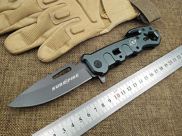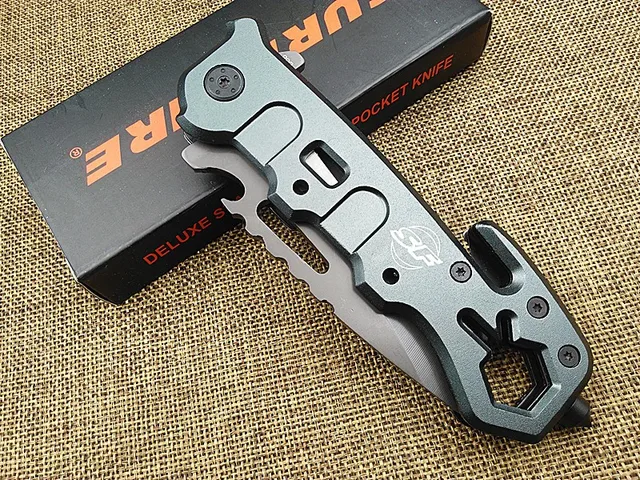 KESIWO SF 생존 접는 나이프 유틸리티 구조 캠핑 나이프 전술 나이프 플리퍼 손 멀티 도구 회색 티타늄 코트 블레이드