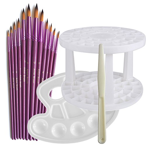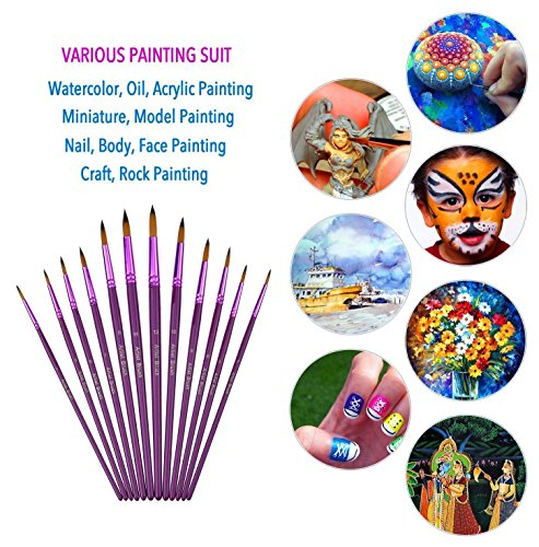 12pcs Acrylic Oil Paint Brushes- a Paint Palette Tray - a Brushes Organizer, Usparkle Professional Round Pointed Tip Watercolor Brushes Set for Art Painting, Watercolor, Ink Painting - Purple