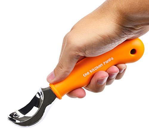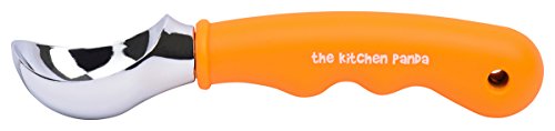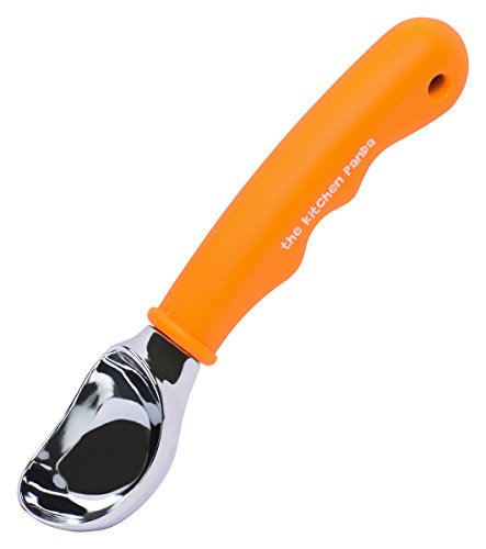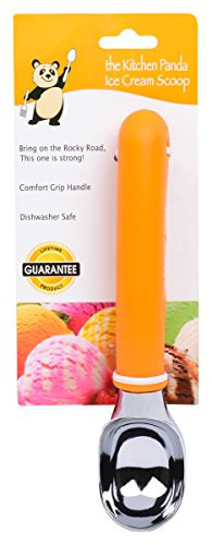 Ice cream scoop by The Kitchen Panda - Premium Quality - Heavy Duty - with comfort grip rubber handle - serves perfect size scoops of ice cream. Amazing Scooper - Orange