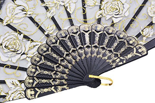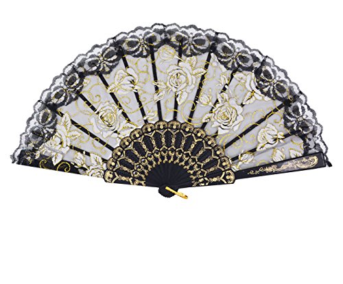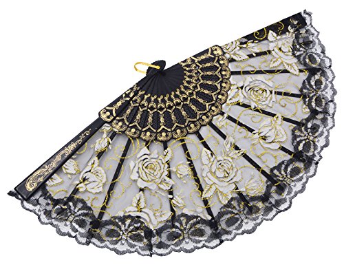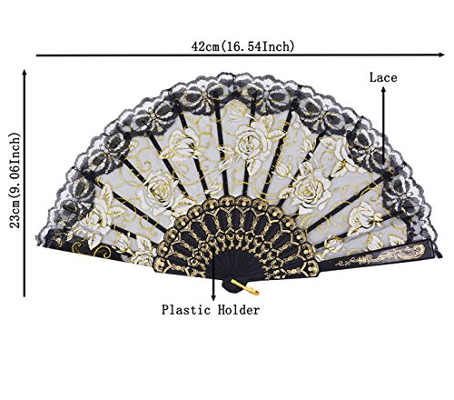 Amajiji Folding Hand Fans,Fashion Elegant Flower Rose Lace Chinese/Japanese Folding Fan (Black)