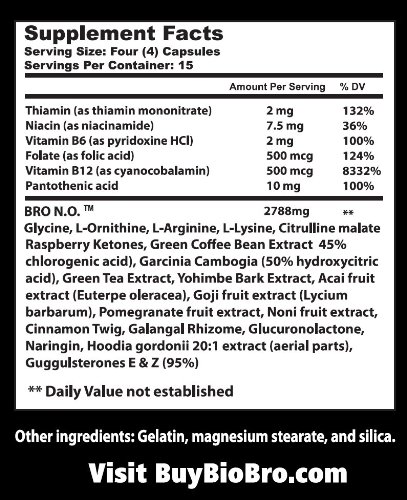 -. Binding : Health and Beauty -. Brand : BRO -. Feature : BRO NO Pre Workout Supplement Pills - Nitric Oxide Amino Acid Formula - 60 Capsules / Best Body Building Supplements Complex - Burn Fat and Build Muscle Fast / Boost Energy and get the most out of your workouts / BRO N.O. " Your Workout Buddy" -. IsAdultProduct : 0 -. Label : BioBro -. Manufacturer : BioBro -. MPN : BRONO -. PartNumber : BRONO -. ProductGroup : Health and Beauty -. ProductTypeName : HEALTH_PERSONAL_CARE -. Publisher : BioBro -. Studio : BioBro -. Title : BRO NO PreWorkout Supplement Pills - Top Nitric Oxide Amino Acid Formula Capsules - The Best NO Bodybuilding NO Pre Workout and Post Workout Supplements Complex For Men and Women - Safest and Healthy Way to Burn Fat and Build Muscle Fast