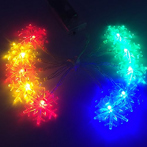 TEQIN 4M 40LED Snowflake Battery Operated Copper Wire String Lights Lamp for Christmas Wedding Party Indoors Outdoors Home Festival Decoration(Colourful)
