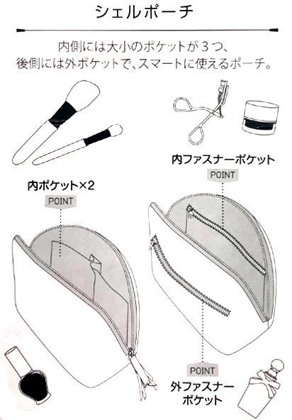 内側にはポケットが3つ 後側には外ポケットがあり スマートに使えるポーチです