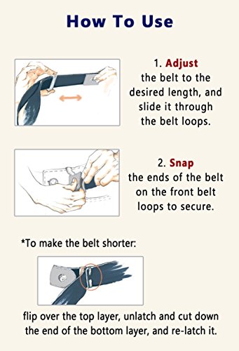 -. Feature : MAKES LIFE EASIER: Never fiddle with the buckle. Snap on once and forget you're wearing a belt all day. Hassle-free dressing, time-saver for bathroom breaks! / INCREDIBLY COMFORTABLE: The elastic stretch belt breathes with you. No buckle pressing into your stomach. No need to adjust when you sit down, even after a big meal. Always keeps your pants in place / SLIM, MINIMAL LOOK: Eliminates the bulky buckle bulge and awkward flap on the side. Very low-profile. Beautifully simple / EXCELLENT QUALITY: Custom-made, highest quality elastic weave for great support. Individual handmade craftsmanship. You'll be impressed / GREAT FOR EVERYONE: For men and women of ALL SIZES. Sitting at the desk or active lifestyle, for anyone to feel comfortable and stop hassling with buckles. Adjustable and easy to use. For people with special needs and seniors