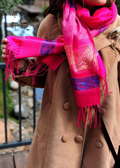 Description: This scarf, very soft feel, the top part there is embroidery with sequins stripes.